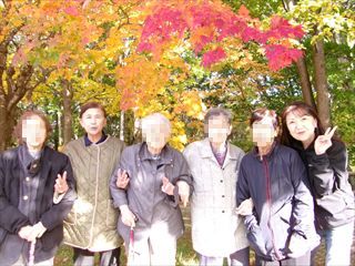 デイサービスの10月の行事は、「紅葉見学」で、平岡公園まで出かけました。 北海道の夏も本州並みに暑くなり、秋になる前に枯れてしまう木が多いので、心配しておりましたが、蔦ももみじも赤くなっていて、 ほっと致しました。 行き帰り、車の窓から見える木々を見て,「きれいだねー」・「こっちはまだだねー」など、皆さま楽しそうに感想を話し合っておりました。 外は、風が冷たく、長い見学はできませんでしたが、グループに分かれての写真撮影は和気あいあいと、良い笑顔を摂ることが出来ました。 帰り道は別のルートを走り、出来る限り紅葉を楽しんでいただきました。 本当に一瞬で、秋が終わってしまいましたが、季節の移り変わりを感じて頂けて良かったと思います。 これから寒さが厳しくなりますので、皆様と共に元気に冬を乗り越えていきたいと思います。 |