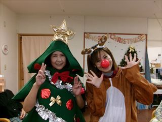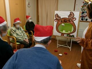 皆様はどんな一年だったでしょうか。 さて、デイサービスでは今年最後となる恒例の大イベントクリスマス会が8日から1週間かけて行われました。 今年の職員はツリーとトナカイ!!! ご利用者様には帽子をかぶっていただきサンタクロースになっていただきました。 サンタの帽子ひとつで一気にクリスマスムードに、、 ツリーチームとトナカイチームに分かれてゲームスタート 今年はゲームを3つ用意しました。 まずはそりをひっぱるトナカイに力を、、ということでトナカイ餌やりゲームです!! 大きく口を開けたトナカイさんに赤と白のクリスマスカラーのボールを投げていただきました。 紅白の玉、、運動会でも見たような、、気のせいですよ!クリスマスボールです!!!! 優しく「頑張れー!!」と応援しあったり、ボールが上手く入らず顔を見合わせて笑い合ったり チーム戦にする事でより和気あいあいと楽しめました。 2つめのゲームはプレゼント運びです。 お隣りへプレゼントを渡していき、5個先に全員に渡せたチームの勝ちです。 皆様声をかけあいながらものすごいスピードでプレゼントを渡していき驚きました。 そのあとはチーム関係なく協力してプレゼント積みにも挑戦しましたよ 女性から始め、届かなくなると頼りになる男性の皆様の出番です!! ちょっとした自慢ですがごう内科のデイをご利用されている男性の皆様は本当に優しくて頼りがいのある方たちしかいません! いつもありがとうございます 最後のゲームはツリーお片付けゲーム! その名の通りタワーの形に積み上げて作ったツリーをはやく片付けれたチームの勝ち!!! 上に乗っているボールを落とさないように慎重に慎重に… 先に終わったご利用者様は余裕のピース ゲームが終わった後は記念撮影 毎日大盛り上がりでご利用者様の笑顔をたくさん見ることができました。 皆さんで教え合いながら協力してゲームする姿はとても温かく職員の心をいつもほっこりさせてくださりました。 3時のおやつは日替わりでケーキを用意しました。 ある日のケーキとコーヒーはこちら 他の日にはショートケーキやチョコムース等毎日いろいろな味を楽しんでいただきました。 プレゼントはささやかですが、寒くなり足先が冷たい方が増えてきたので靴下を用意しました。 さっそく履いてきてくださる方もいらっしゃり、とても嬉しく思っております。 来年の行事も笑顔たくさんみられるように計画中ですのでお楽しみにしていてくださいね。 本年も大変お世話になり、ありがとうございました。皆様のおかげで無事に一年を締めくくることができそうです。 年末に近づき、さらにお忙しくなる時期かと思いますが、お身体にお気をつけて良き年をお迎えください。 デイサービスセンター 庄田 |